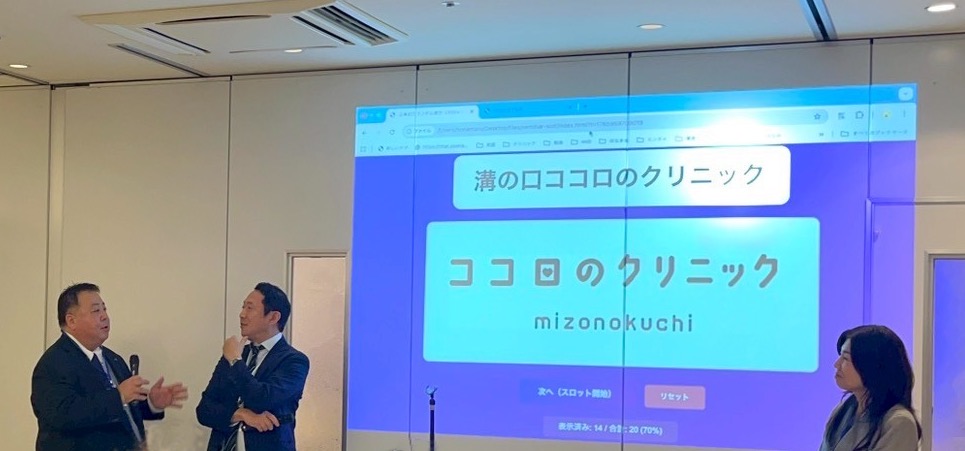 用意されたスロットで、参加された20の医療機関の皆様をご紹介するコーナーを設けました。司会は当会のメンバーが務め、和やかで親しみやすい雰囲気の中で進行させていただきました。