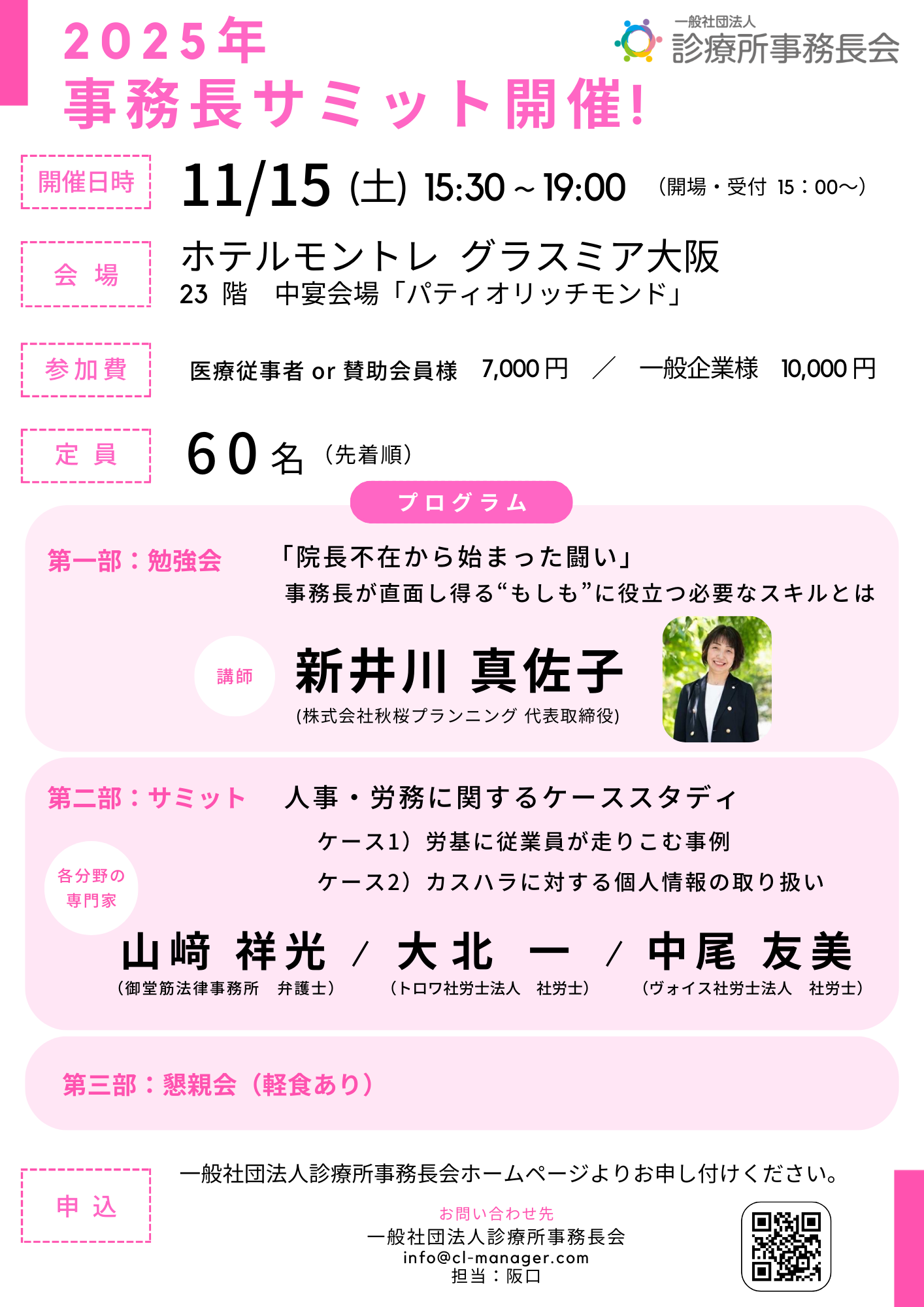 11月15日(土)に特別編として2025年事務長サミットを開催いたします。